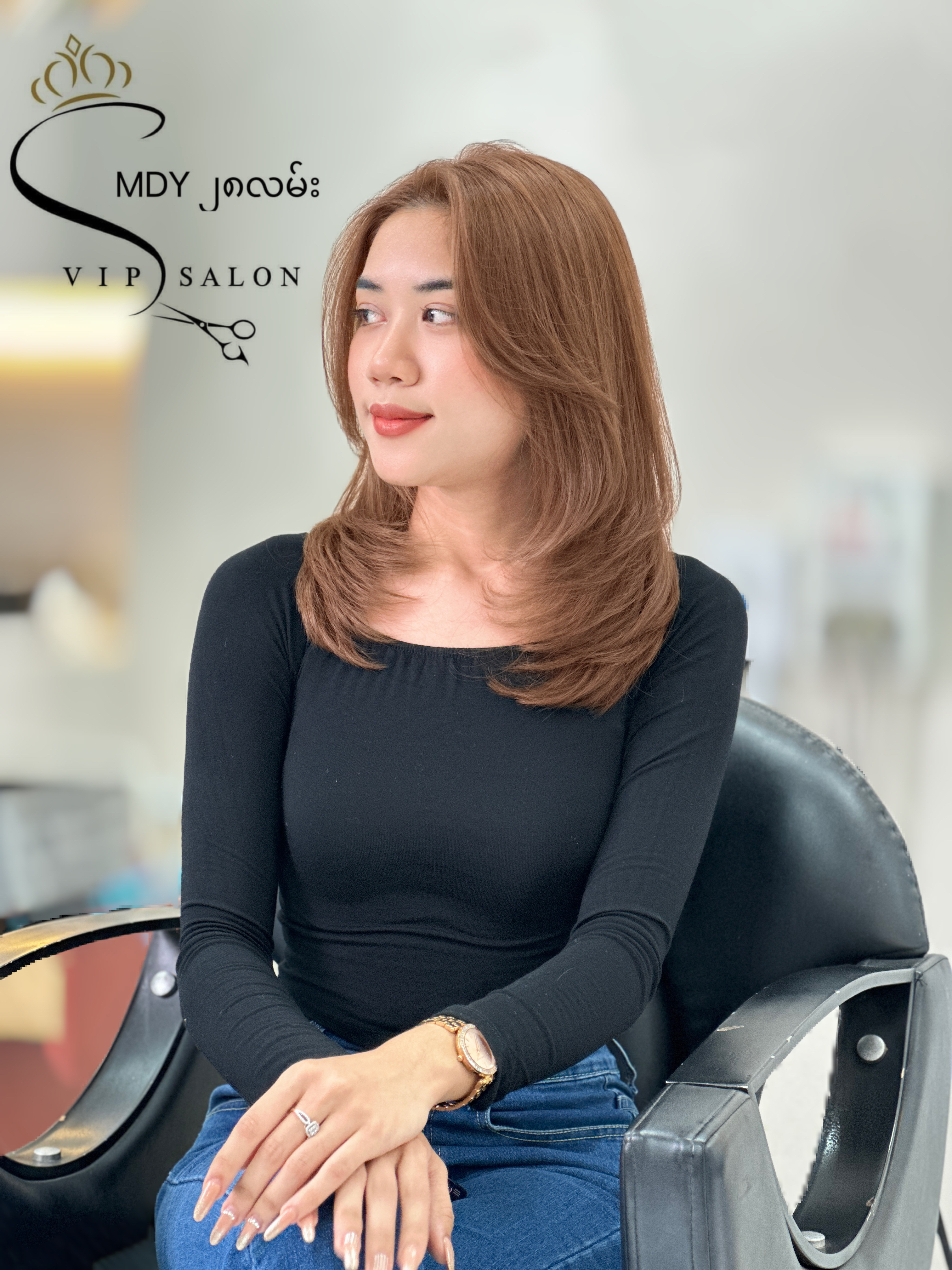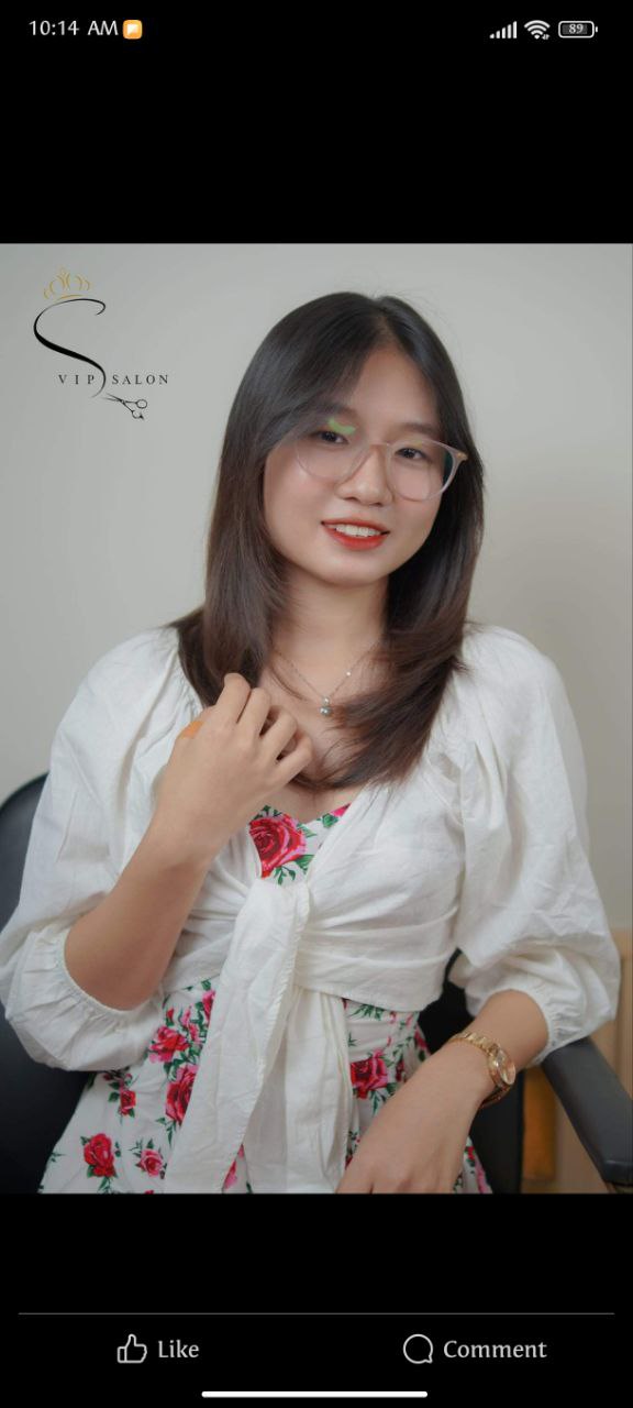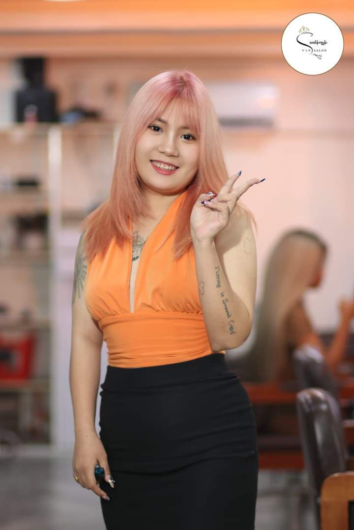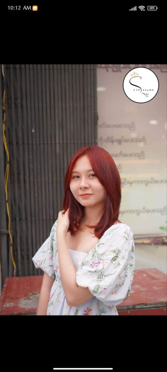 ကျွန်မသည် (2018.12.2)တွင် VIP Hair salon တွင် ဆံပင်ပညာပိုင်းဆိုင်ရာစတင်သင်ယူခဲ့ပြီး VIP Beauty Salon သင်တန်းကျောင်းမှ အလုပ်သင်/Shampoo/ Assistant /Stylist သင်တန်းများကို တတ်ရောက်အောင်မြင်ခဲ့ပါသည်။ VIP Beauty Salon သင်တန်းကျောင်းမှ သင်တန်းဆင်းလက်မှတ်များလည်း ရရှိထားခဲ့ပါသည်။ အခုလက်ရှိတွင် VIP Beauty Salon မှာ color အထူးပြုဖြင့် service ပေးလျက်ရှိပါသည်။ ကျွန်မနှင့် VIP Beauty Salon မှာ hair service ယူမည့် ဧည့်သည့်တော်များကိုလည်း အလှဆုံးနှင့် အကောင်းဆုံး ဖြစ်အောင် လုပ််ဆောင်ပေးသွားပါမည်။